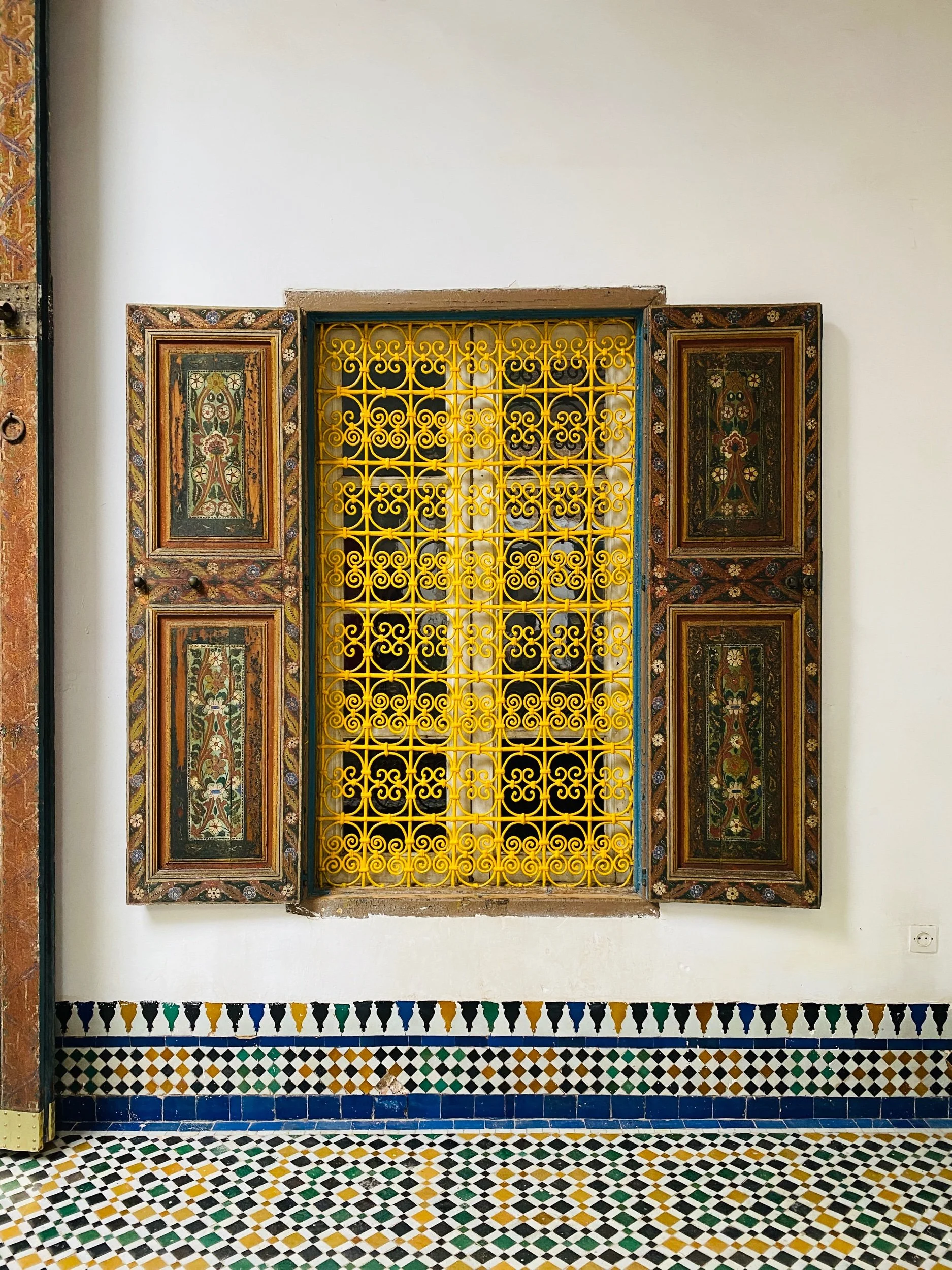 This morning we were up at 6.45am for an 8am departure as today we are off to Essouira (pron. Ess-oui-ra (French) or Ess-oo-wear-ah). Surprisingly enough, the skies were grey and we copped a very heavy shower while taking our bags across to the lobby! Once again we took advantage of the made-to-order omelette and pancakes, this morning pancakes were more like giant crumpets with a slight yeast flavour from the raising agents. On the way to Essouira we had a morning in Marrakech and picked up a local guide for a local city tour, Abdul, before stopping by the Bahia Palace where we learned decorations are used to fill time not space. Text in decorations gives people something to read whereas images don’t occupy people as long and image-based decorations are more western. From my understanding this is because in their religion and culture, the idea is not to try and replicate anything ‘made by god’ because it is already perfect. So this is why symbols and text are used and not images of pre-existing things like people, flowers, deities etc.